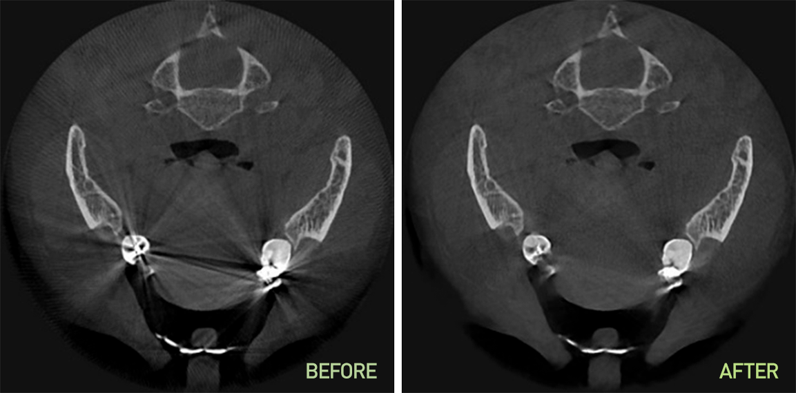 Akıllı metal artifak eleminasyon fonksiyonu ile görüntü üzerindeki bozulmaları minimize eder. Protez den kaynaklanan görüntü bozulmalarını da minimize ederek optimal görüntü kalitesi sağlar…